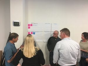 Because the ART leadership team also has a role of walking the room, visiting teams on their breakouts, asking questions, sensing what is going on, being available to answer questions, we decided to split their time on each breakout between doing their own planning and going around the room.