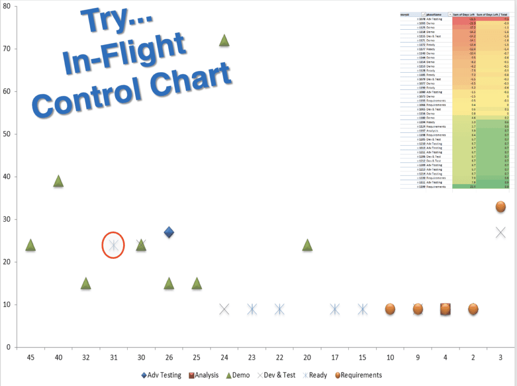 A Confession. While I’m a great fan of using SPC charts to explore specific cycle times and reduce variation / continuously improve a Kanban System (a great blog by Benjamin Mitchell), I’m only seeing preliminary results in the field with teams I’m coaching. The primary reasons are a lack of tooling, a lack of incentive to manage this manually, and the fact that teams are not yet mature enough to handle it effectively. I’m hoping this will change soon.